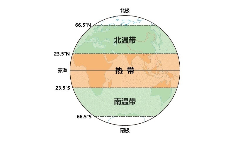 接着我们就可以开始展示各带分别在什么纬度范围内